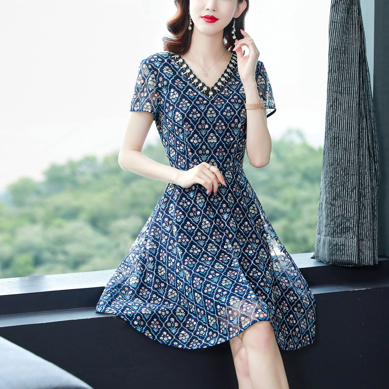 蕾丝连衣裙2021新款夏季v领设计感女装气质收腰小碎花性感短裙子热门设计联盟服务商