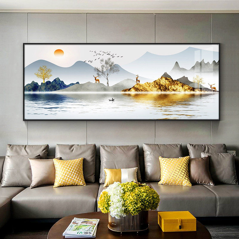-客厅画沙发背景墙装饰横幅轻奢大气招财山水风景晶瓷壁画餐厅挂.热门设计联盟服务商
