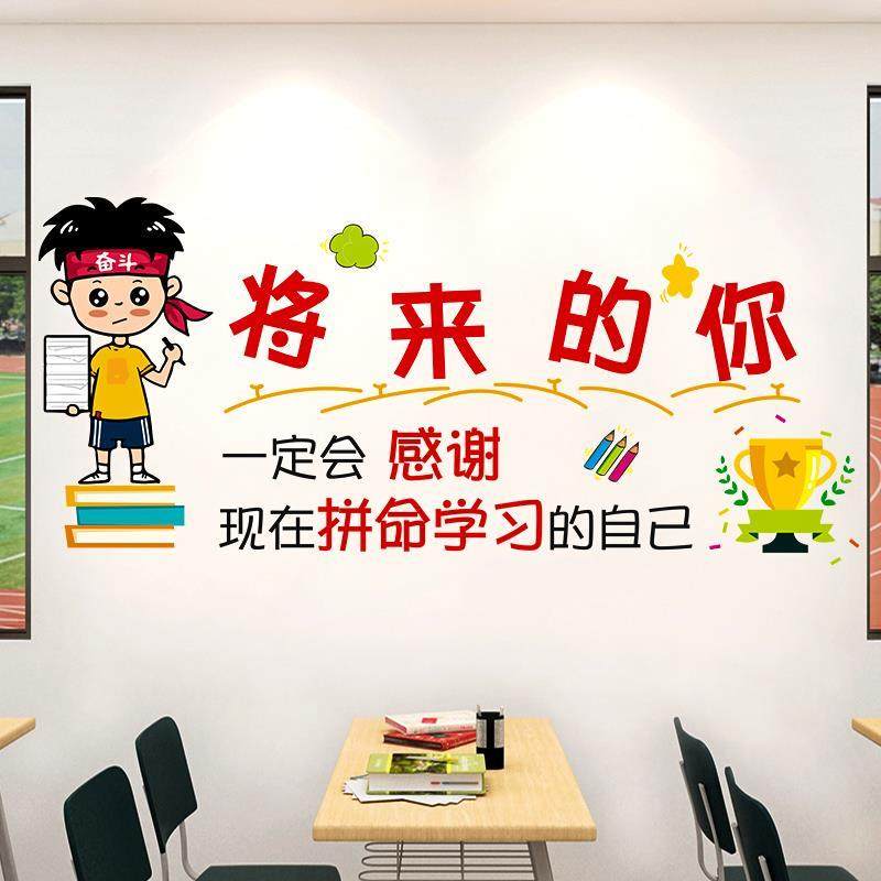 文化墙面班级装饰学生书房间宿舍寝室图书馆墙贴鼓励学习文字贴纸热门设计联盟服务商