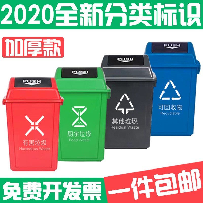淘新惠四色垃圾分类垃圾桶幼儿园可环卫可其他商用带盖大号公共场热门设计联盟服务商