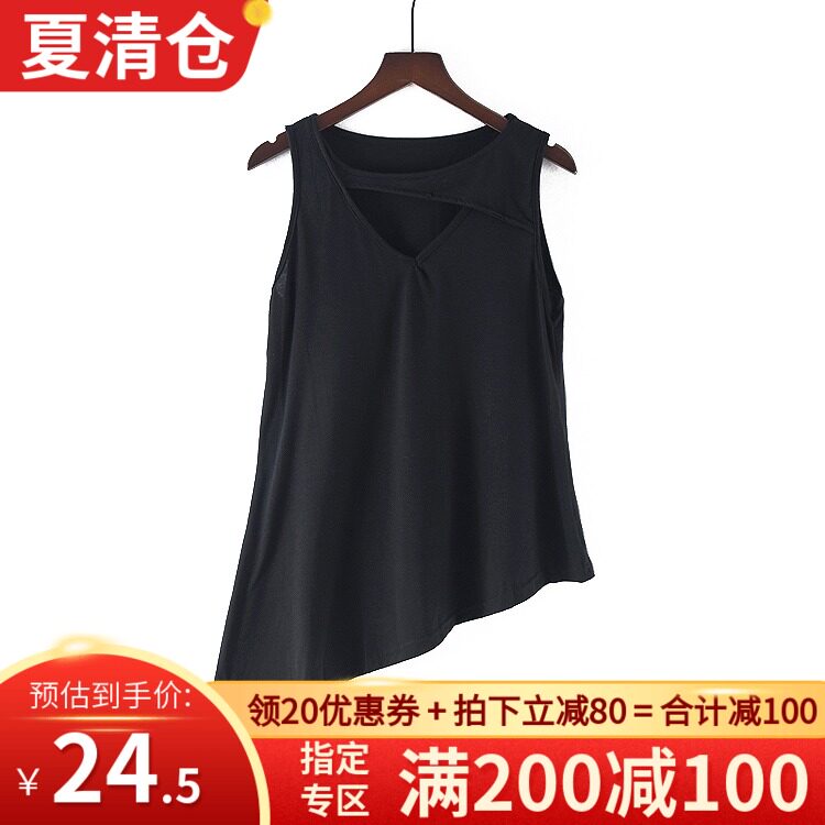 无袖不对称T恤女夏季新款设计感修身显瘦百搭圆领套头小心机上衣热门设计联盟服务商