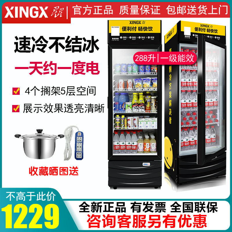 星星288G 饮料柜冷藏展示柜便利店超市商用冰箱立式冰柜368G一级热门设计联盟服务商