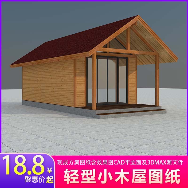 原创小木屋设计图纸30.6平方轻型木屋现成CAD图纸效果图模型文件热门设计联盟服务商