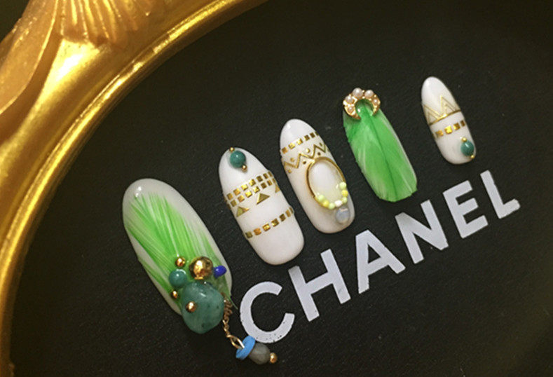 殿堂级美甲狂 日本光疗甲 成品 羽毛镶钻新娘美甲贴片 婚纱摄影G1热门设计联盟服务商