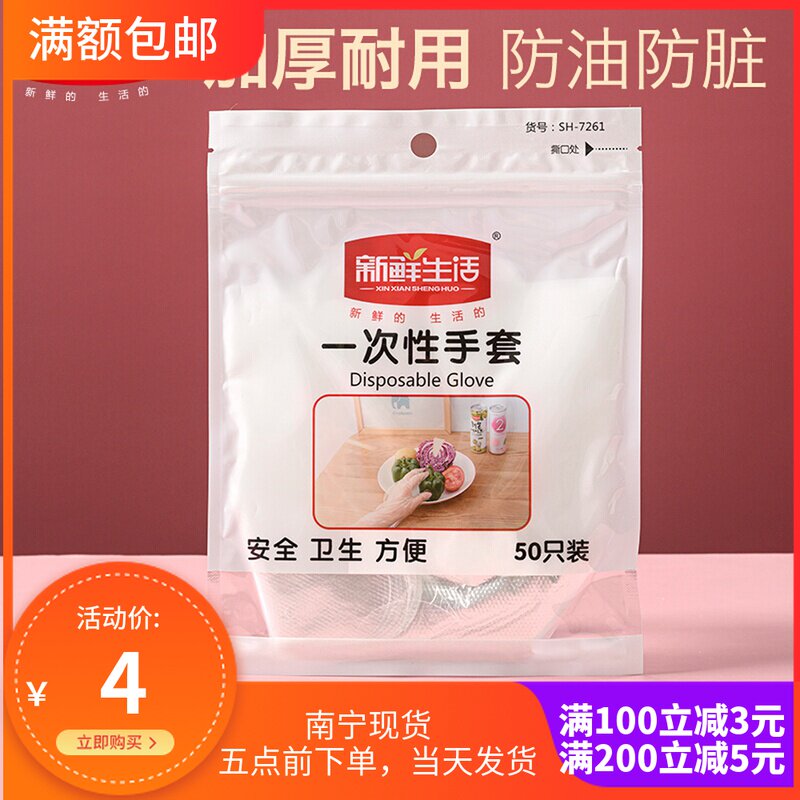 新鲜生活一次性PE手套小吃烧烤手抓透明通用薄款防水餐饮手套热门设计联盟服务商